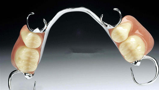 利用周?chē)难例X作為支撐,通過(guò)卡環(huán)來(lái)固定假牙。