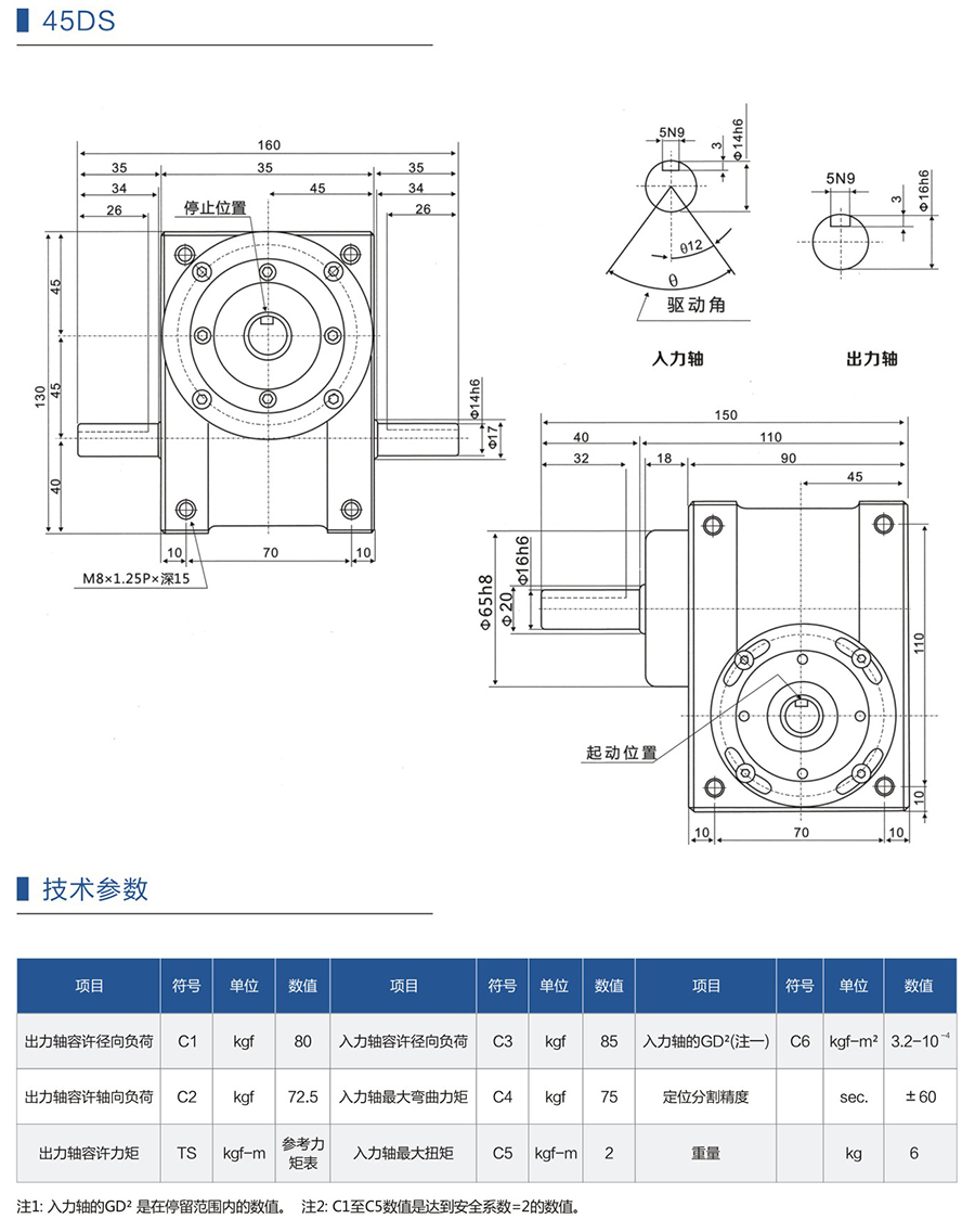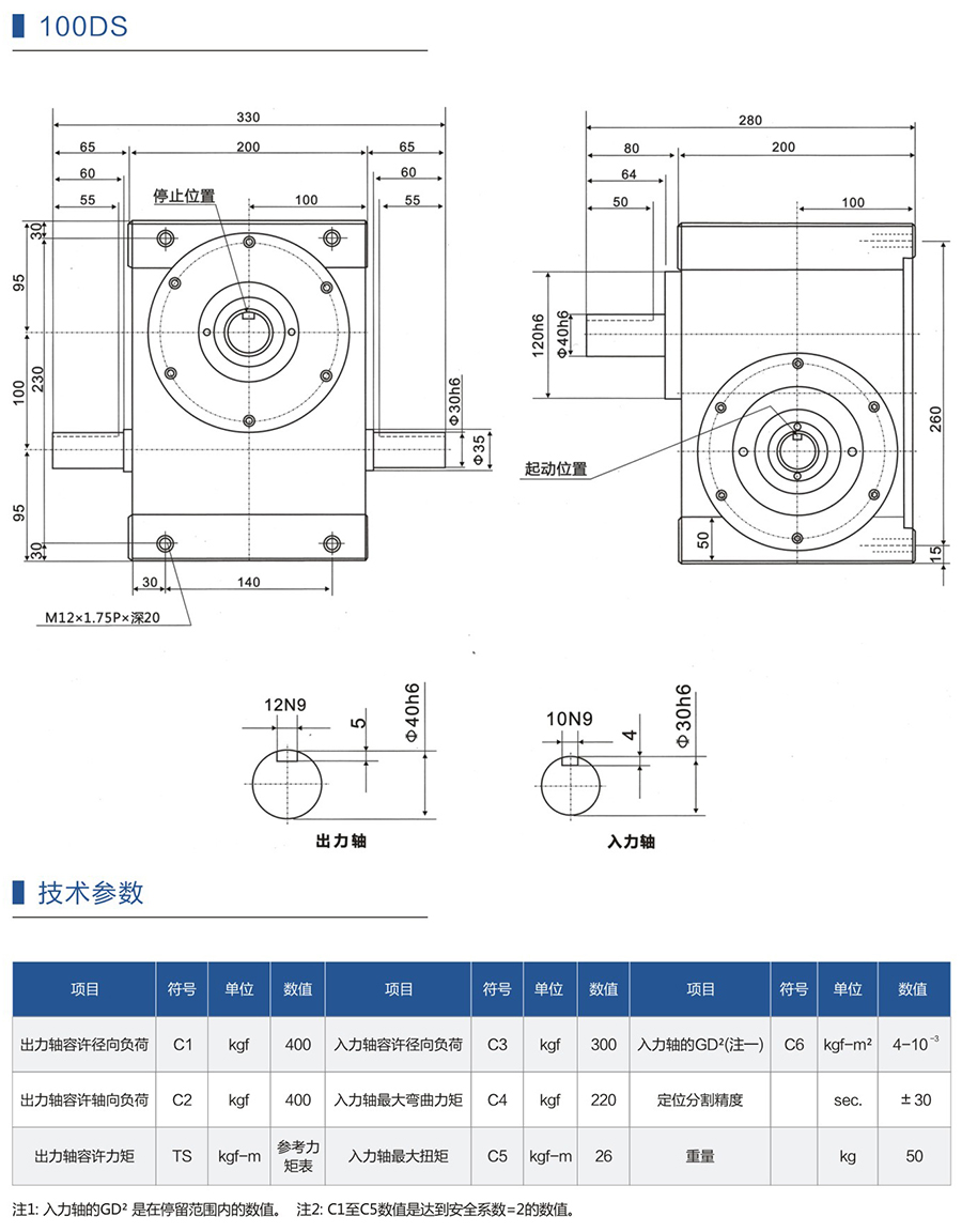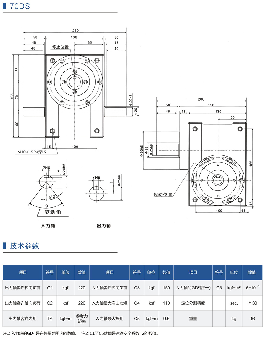 此系列機種為典型傳統(tǒng)式心軸造型,其在分割器上加工安裝配合齒輪、聯(lián)軸器或聯(lián)軸盤,需特別注重孔徑公差(+0.015/-O)、及鍵槽公差(+0.015/-O),其使用場合在輸送帶驅(qū)動、齒輪驅(qū)動、無間隙聯(lián)軸器結(jié)合驅(qū)動居多。