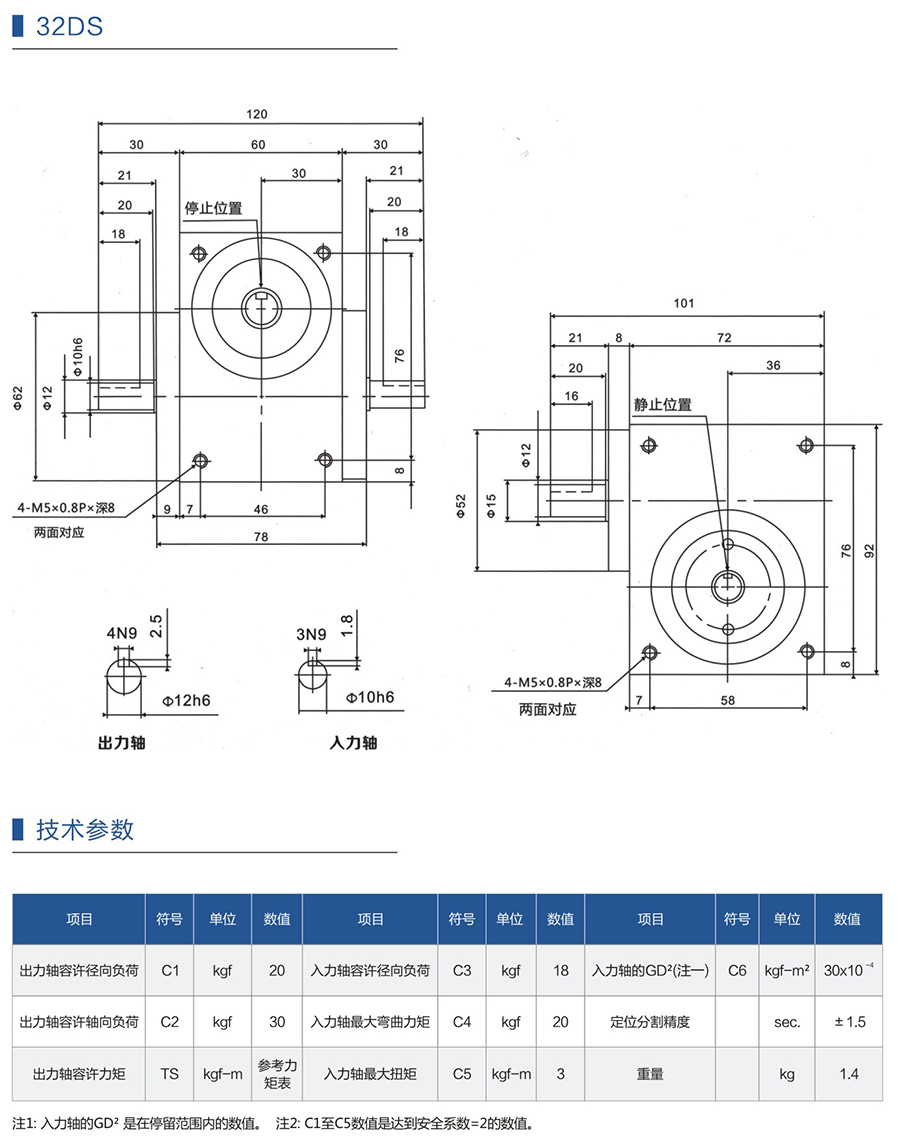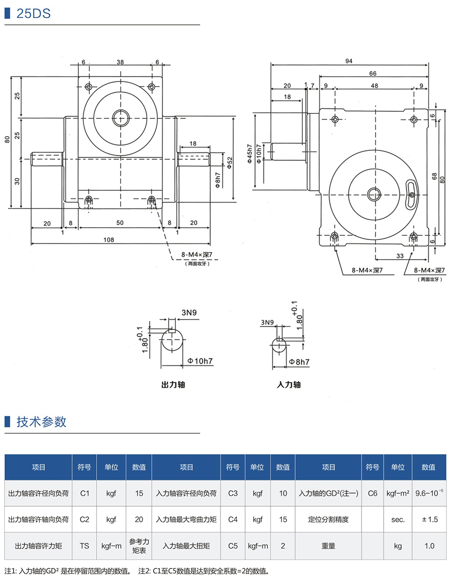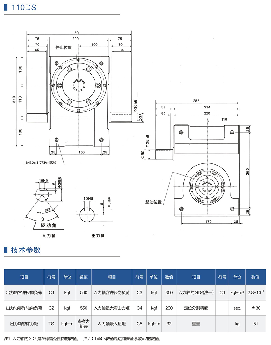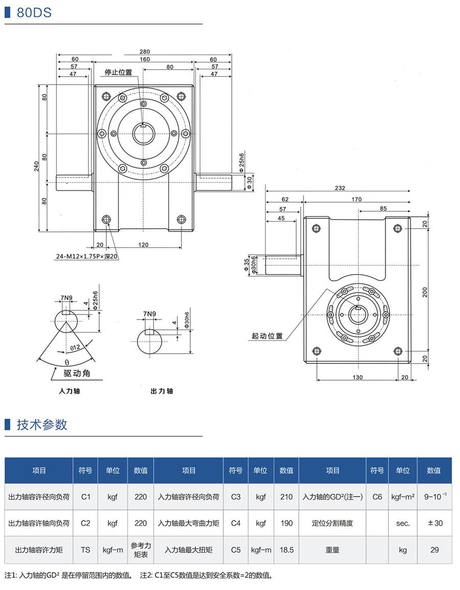此系列機種為典型傳統(tǒng)式心軸造型,其在分割器上加工安裝配合齒輪、聯(lián)軸器或聯(lián)軸盤,需特別注重孔徑公差(+0.015/-O)、及鍵槽公差(+0.015/-O),其使用場合在輸送帶驅(qū)動、齒輪驅(qū)動、無間隙聯(lián)軸器結(jié)合驅(qū)動居多。