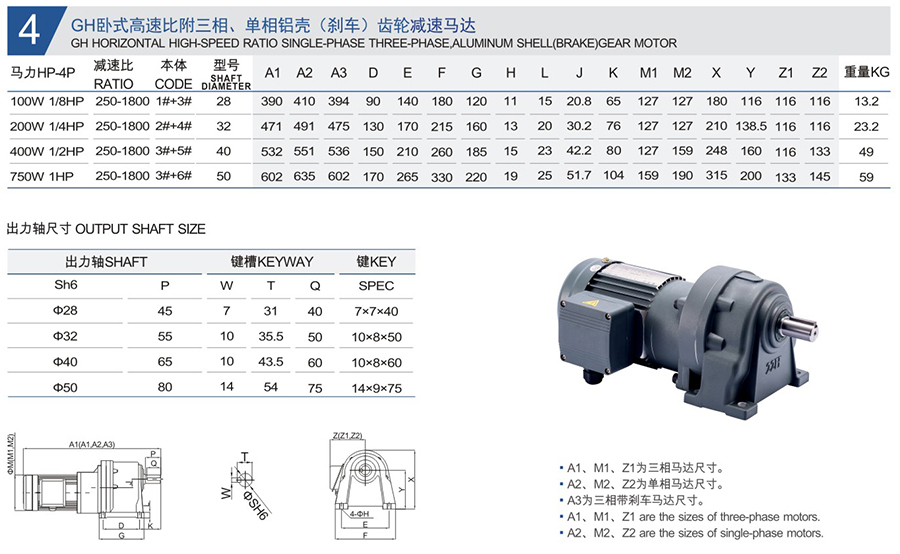 GH臥式高速比附三相、單相鋁殼(剎車)齒輪減速馬達(dá)